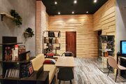 Design loft with panoramic windows and kitchen