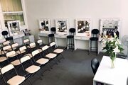 FACES - бьюти-пространство. Зал с гримерными зеркалами